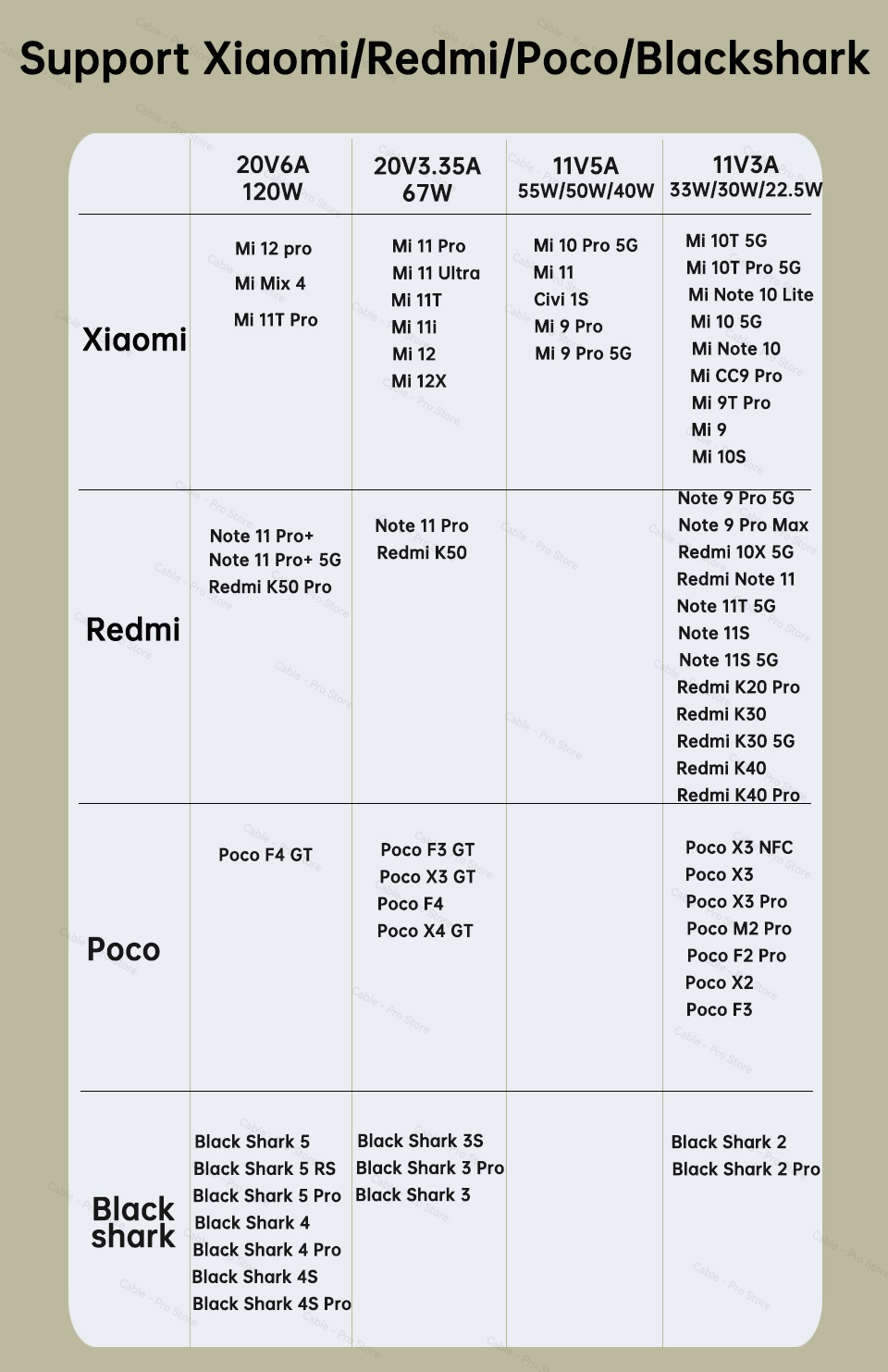 Actually performs 120W charges (measured in Xiaomi 11T Pro), although eye: it is not an ORIGINAL XIAOMI CABLE. There are No logos, No brands on the metal parts as the real ones do.